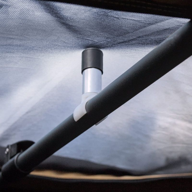 Accessories: telescopic ladder, shoe bag, pockets for accessories, LED lighting for connecting to a powerbank, anti-condensation mat, additional T-SLOT mounting screws, tent closing handle.