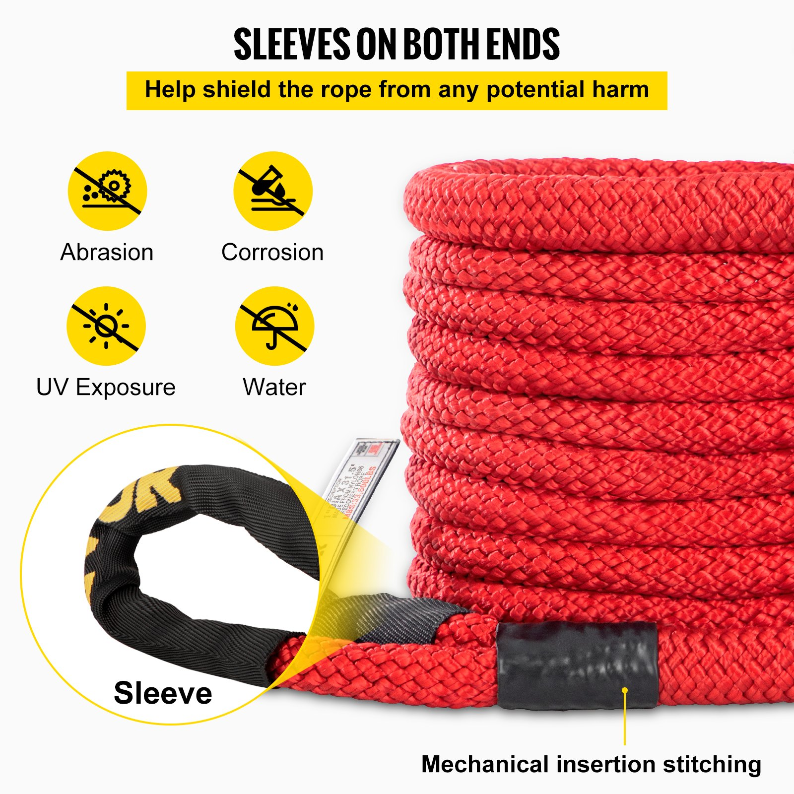 VEVOR 1" x 31.5' Recovery Tow Rope, 33,500 lbs, Heavy Duty Nylon Double Braided Kinetic Energy Rope with Loops and Protective Sleeves, for Truck Off-Road Vehicle ATV UTV, Carry Bag Included, Red